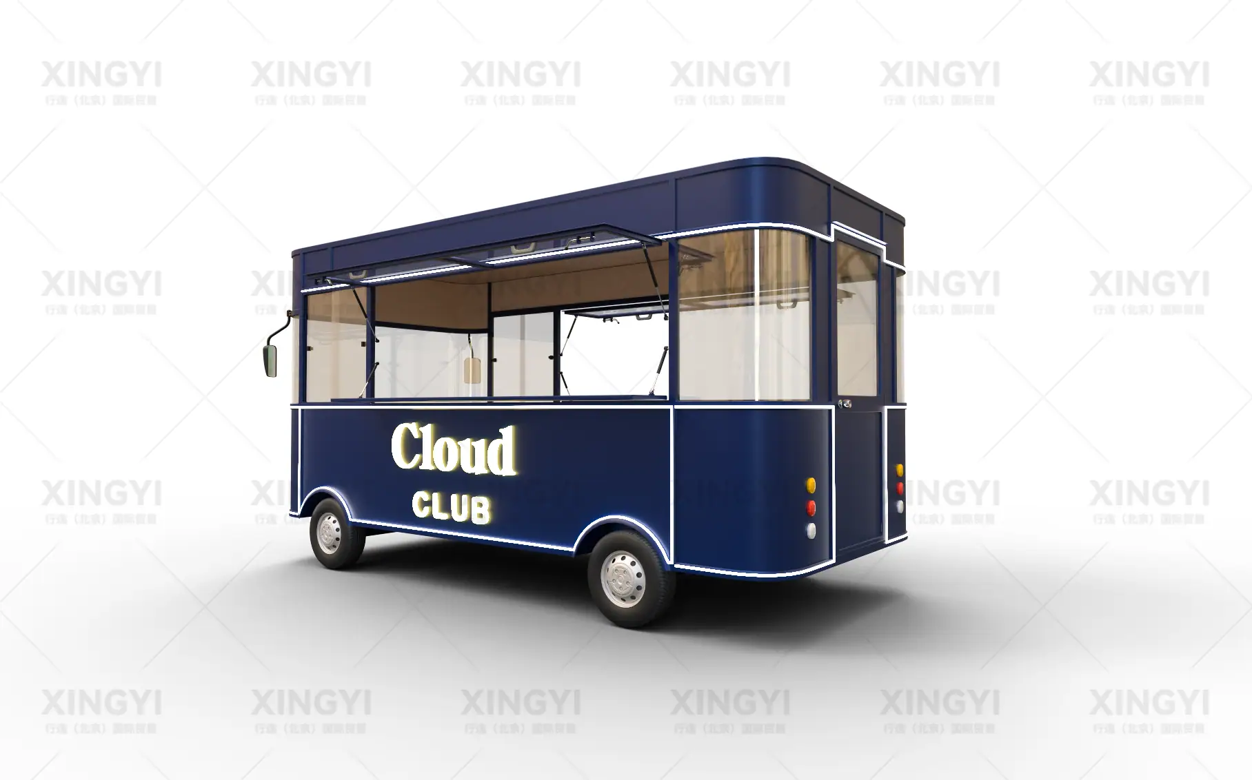 镀锌钢管框架、镀锌钢板车身、PVC内墙装饰板、外接电源接口、照明灯管、插座、开关