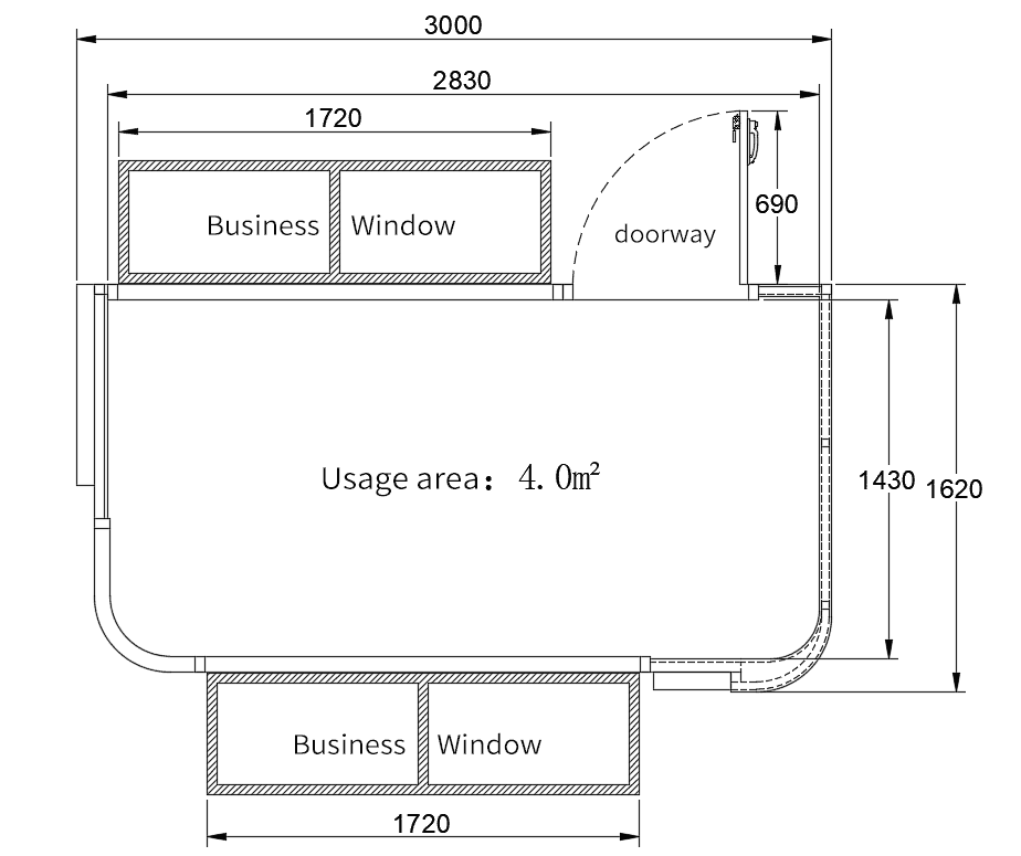 镀锌钢管框架、镀锌钢板车身、PVC内墙装饰板、万向轮、外接电源接口、照明灯管、插座、开关