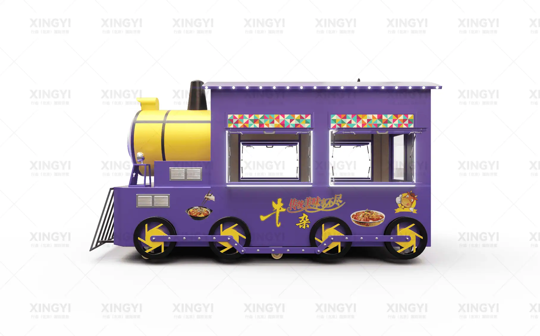 镀锌钢管框架、镀锌钢板车身、PVC内墙装饰板、万向轮、装饰轮、外接电源接口、照明灯管、插座、开关
