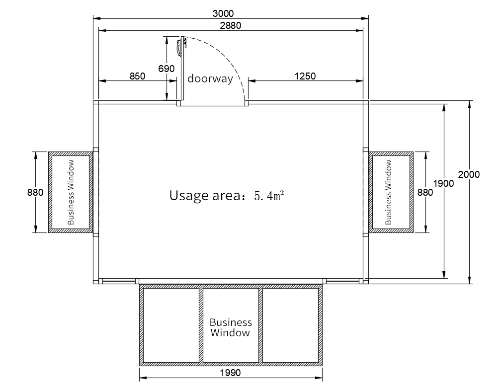 镀锌钢管框架、镀锌钢板车身、PVC内墙装饰板、万向轮、外接电源接口、照明灯管、插座、开关